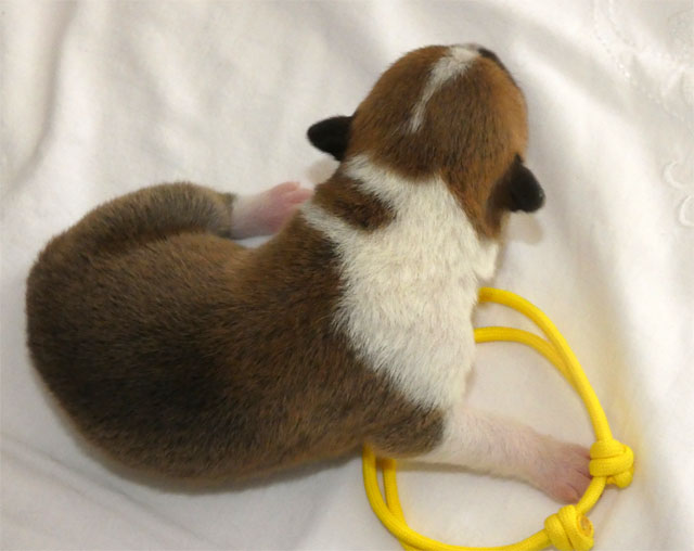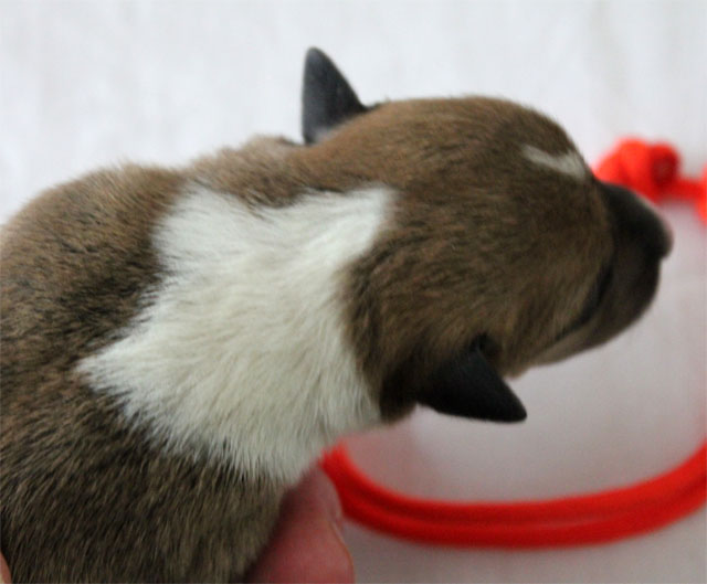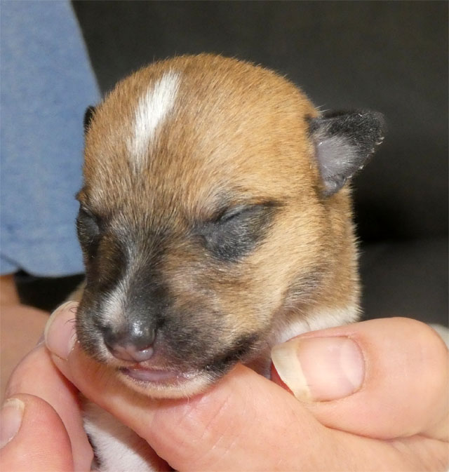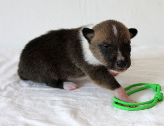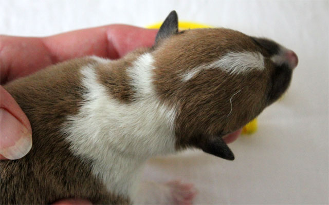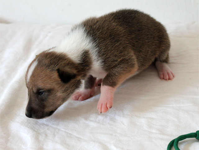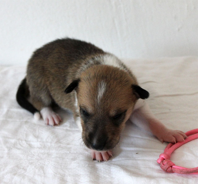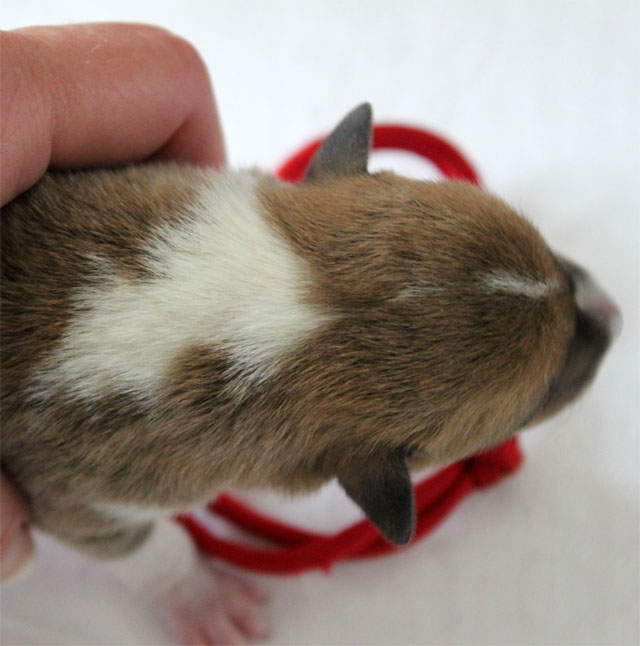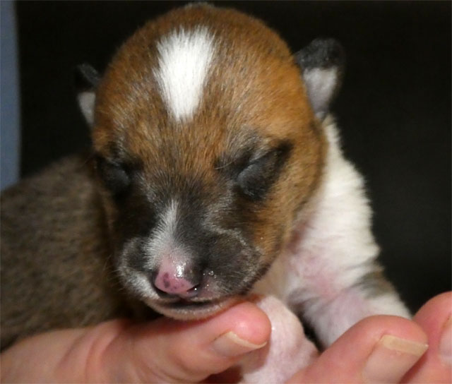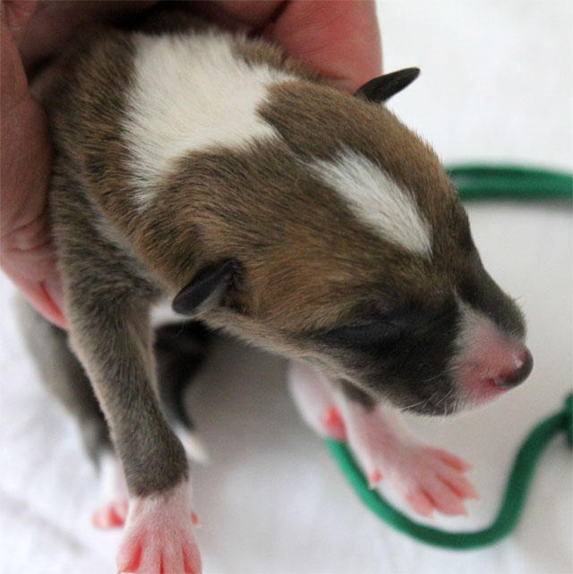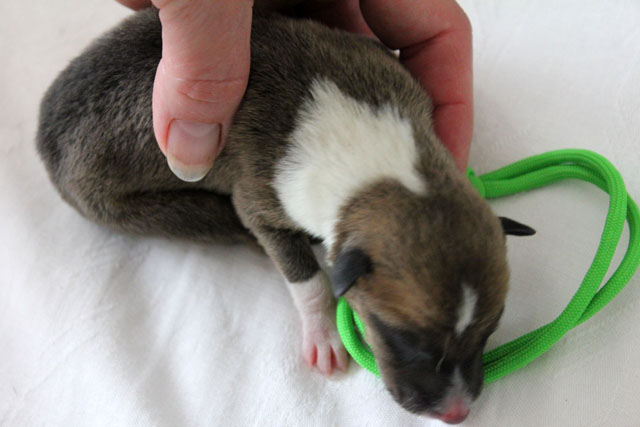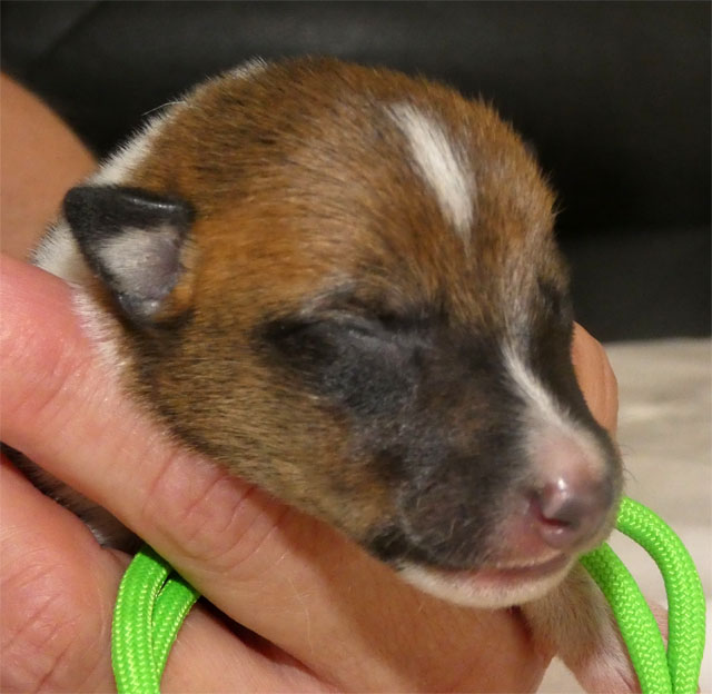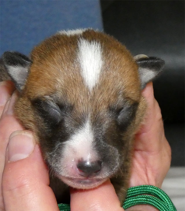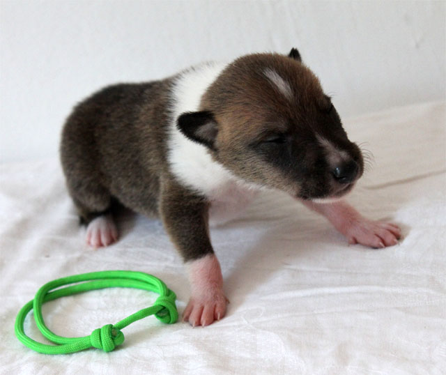 Wir haben hier die Welpe am Nachmittag der Geburt fotografiert um die Kleinen anhand ihrer Zeichnungen wieder zu erkennen. Wir mögen den kleinen frisch geborenen Welpen keine Halsbänder oder ähnliches um den Hals binden.