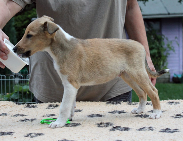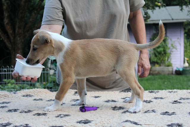 Alle haben mehr oder weniger zugenommen. Dieses mal gibt es doch mehr Gewichtsunterschiede. Brenda ist eine ganz liebe, besorgte Mama. wehe es ist mal ein Welpe etwas unruhig und laut dann versucht sie ihn an ihre Zitzen zu schieben und beleckt ihn. Mich schaut sie dann noch mit großen Augen an, als möge sie sagen "bitte helf" doch. Was ich natürlich immer mache.