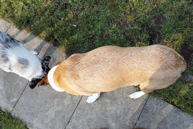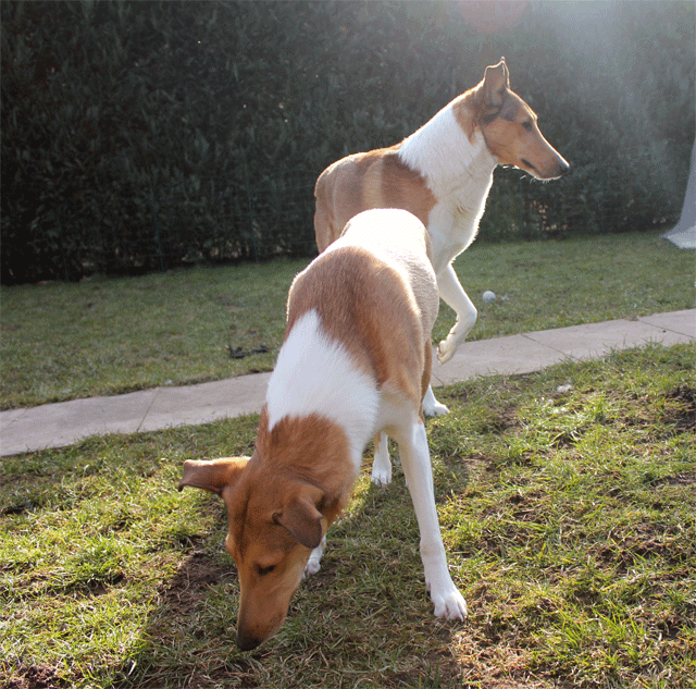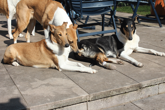 Moni und Heinz haben uns überrascht. Benny, der Vater der zukünftigen Welpen, war auch mit von der Partie. War das eine Freude. Natürlich hat sich Merida auch riesig gefreut, Benny wieder zu sehen.