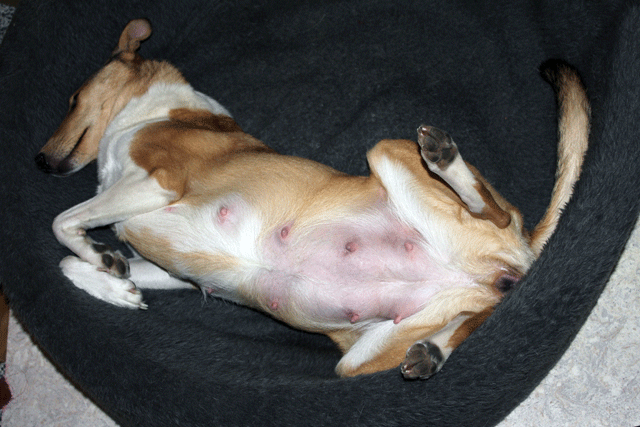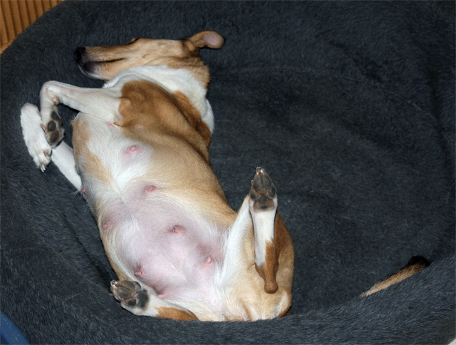 Merida ist schon die letzte Zeit sehr schmusig. Sie kommt jetzt jeden Abend zu mir auf das Sofa und will kuscheln. Ob in ihrem Bäuchlein Welpen heranwachsen ....... wir hoffen sehr. Die kleinen Zitzen erscheinen leicht rosa. Ein Zeichen????
