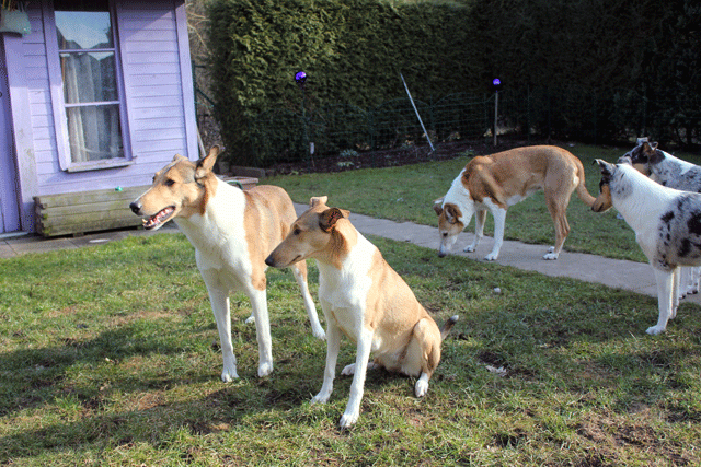 3 Rüden sable, 2 Hündinnen sable, 3 Hündinnen tricolour