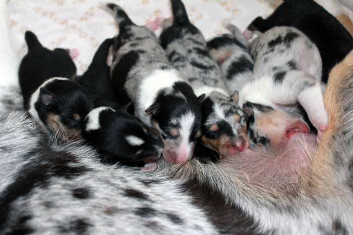 Viele Bilder von Blue Sks´s Welpen gleich nach der Geburt sehen Sie auf unserem Welpenblog