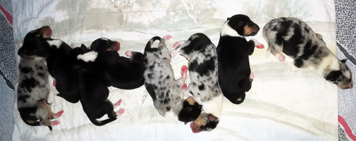 Das erste Bild. Blue Sky mit ihren 8 wunderschönen Welpen, gerade wenige Stunden alt
