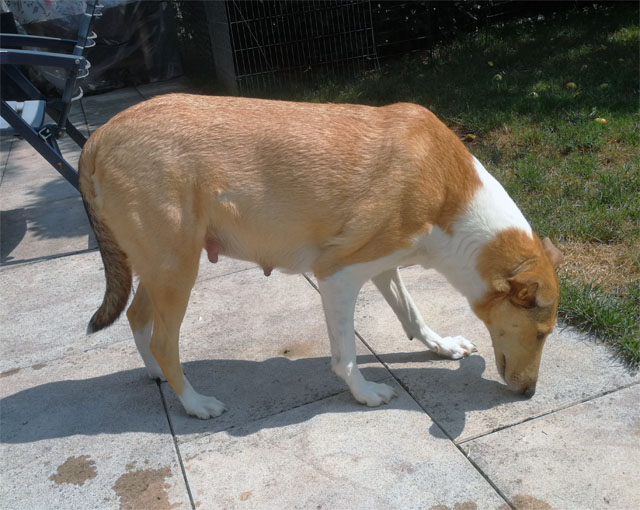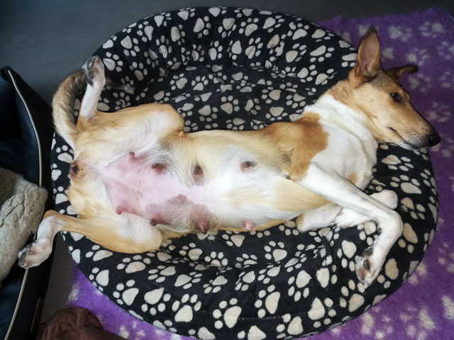 Der Countdown geht los. Es dauert nun nicht mehr lange bis Merida´s Welpen geboren werden. Sie ist in den letzten Tagen richtig rund geworden. Das Fressen schmeckt