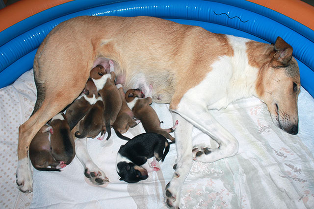Merida hat die Geburt wieder gut überstanden und die kleinen Welpen sind gut in ihrer neuen Welpe angekommen. Allen geht es gut und die Welpen haben schon kräftig zugenommen.
