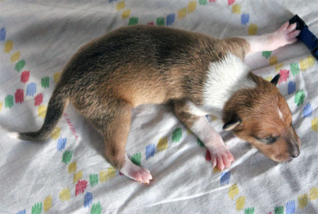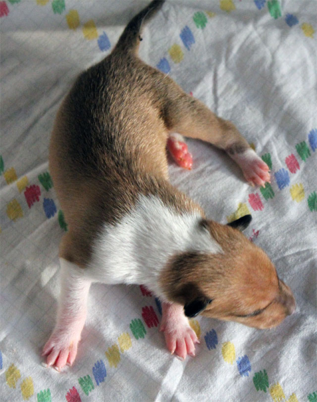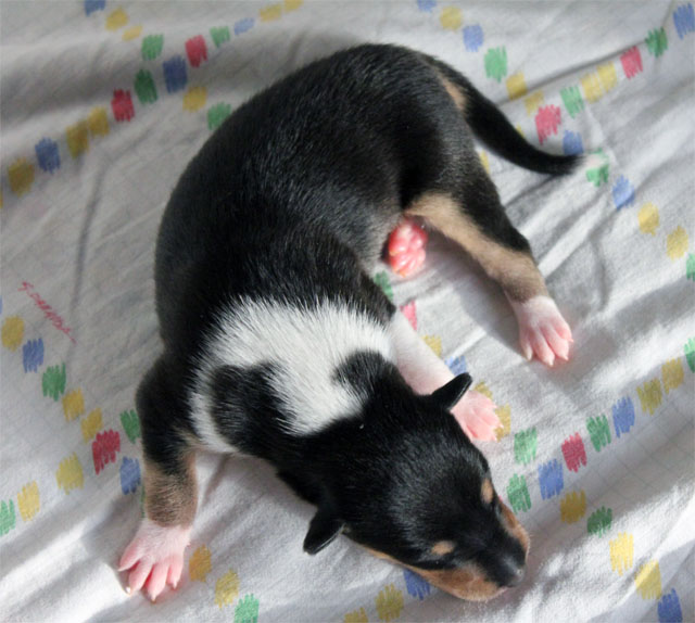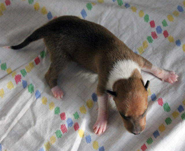 Hier stellen sich die Welpen einzeln vor, so wie sie geboren wurden. Die Welpen sind auf den Bildern 6 Tage alt.