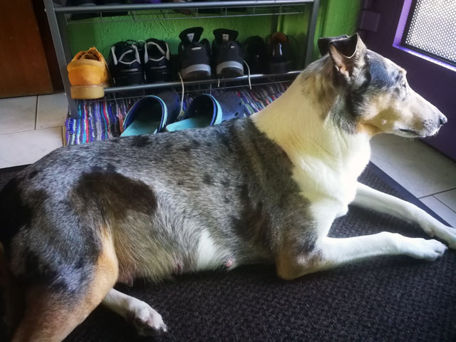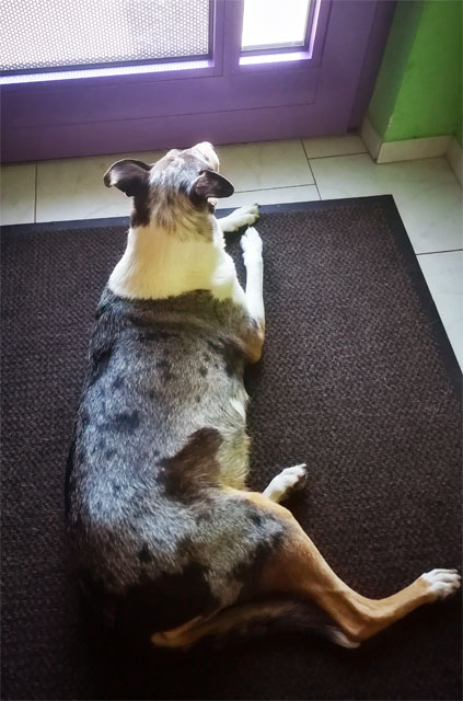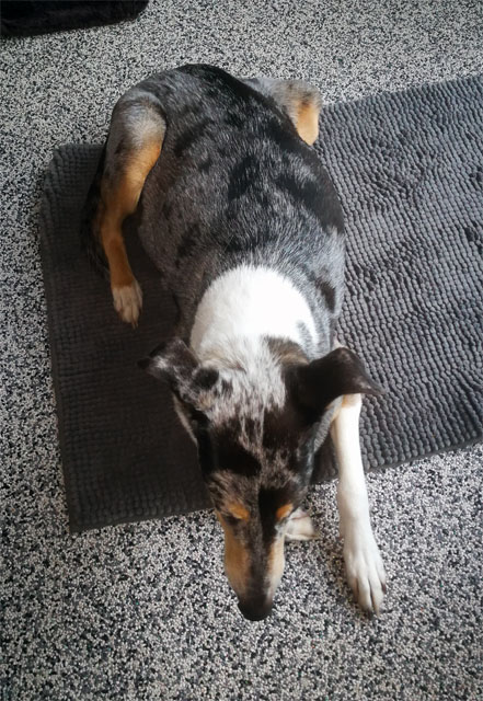 Irina liegt im Gang und wartet auf das Gassi gehen.