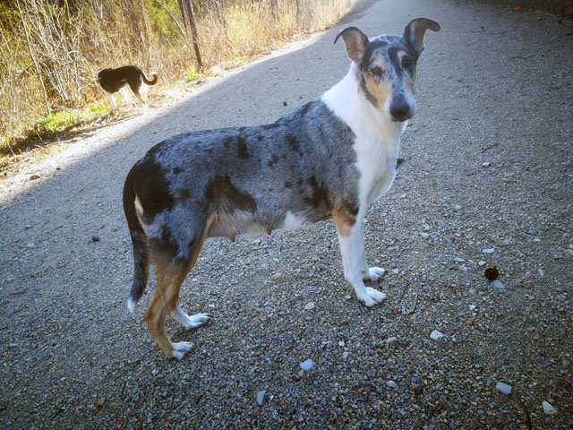 Irina bei unseren Spaziergängen. Ihr Bäuchlein ist noch klein und Figur hat Irina auch noch.