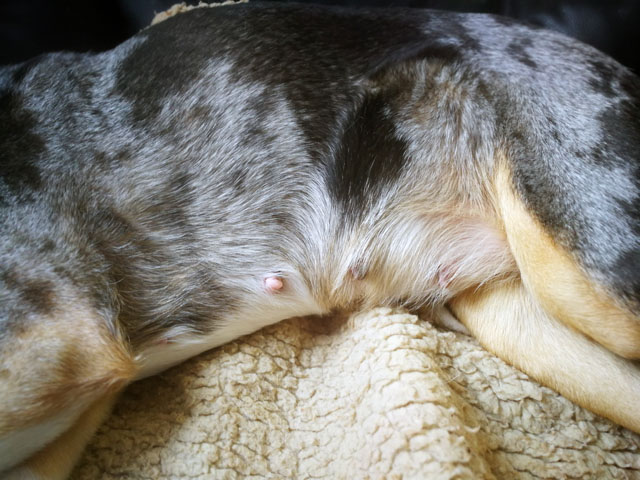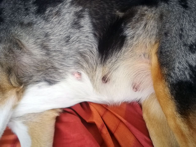Bei Irina werden die Zitzen nun richtig rosa und werden größer. Auch ihr Bäuchlein ist gewachsen.