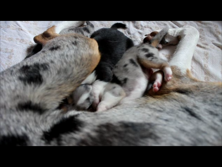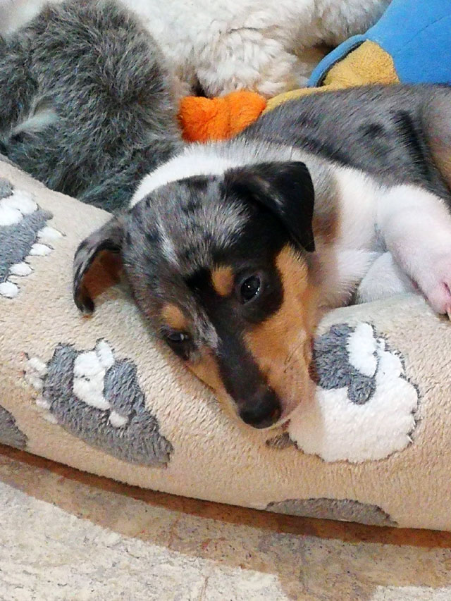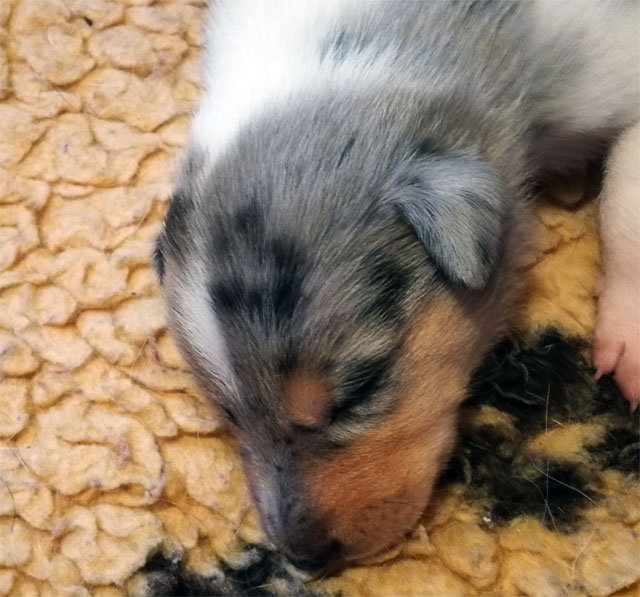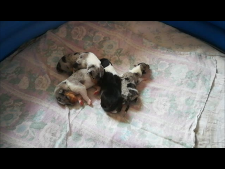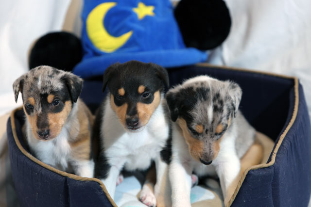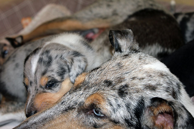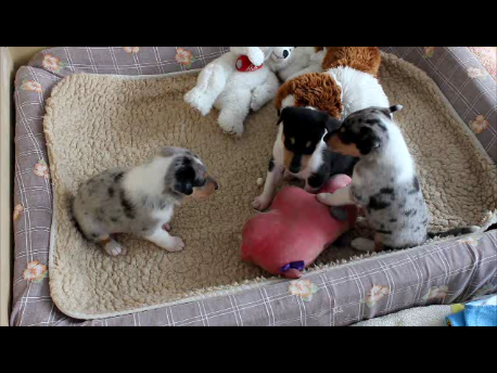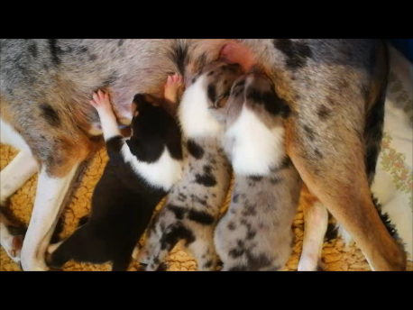 Smilla schenkte uns 2 Rüden / 1 Hündin mit wunderschönem bluemerle und 1 tricolour Rüde