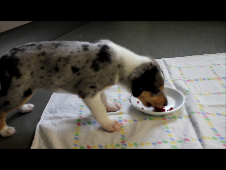 und das zweite Video zeigt wie die Welpen selbst getrockneten Pansen kauen.