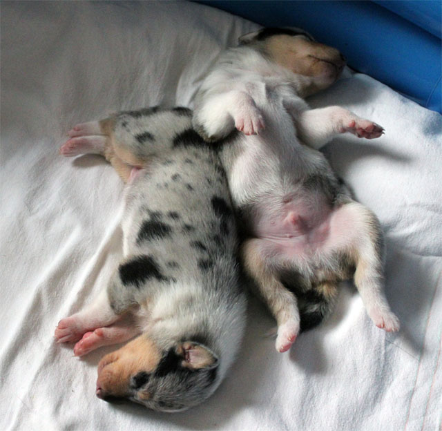 Aber schnell haben sich die beiden Würfe zusammengefunden und am Schluss wurde gemeinsam gekuschelt und geschlafen.