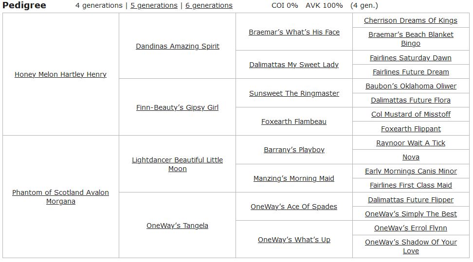 | Int. Nl. Lux. Lit. Fin. Ch. Honey Melon Hartley Henry "Tico" | Dt. Jug. Ch. Phantom of Scotland Avalon Morgana "Tracy" |