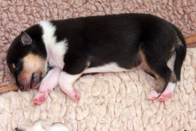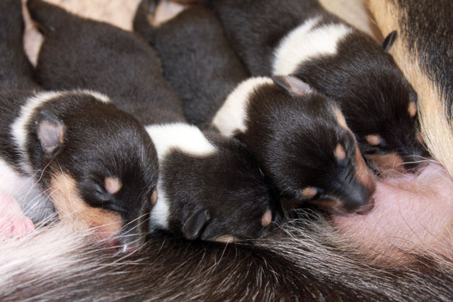 Alle Welpen sind tricolour und werden CEA frei und MDR +/+ oder +/- sein (laut Eltern Gentest).