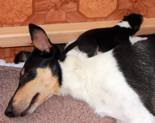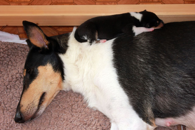 | viel Arbeit (trinken) macht die ersten Welpen müde | |