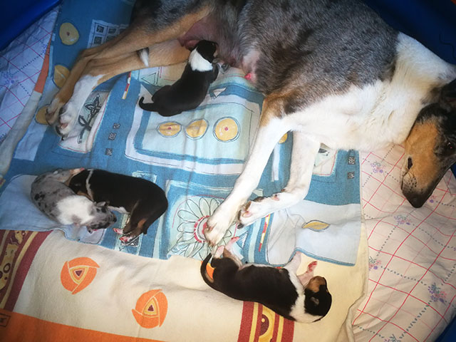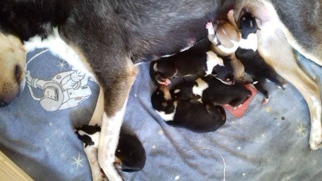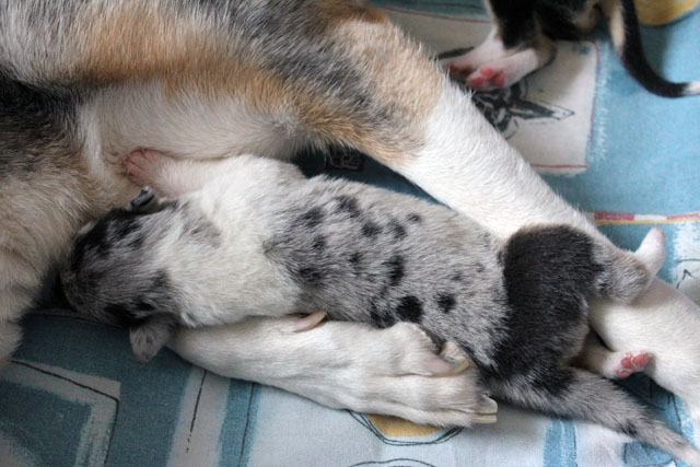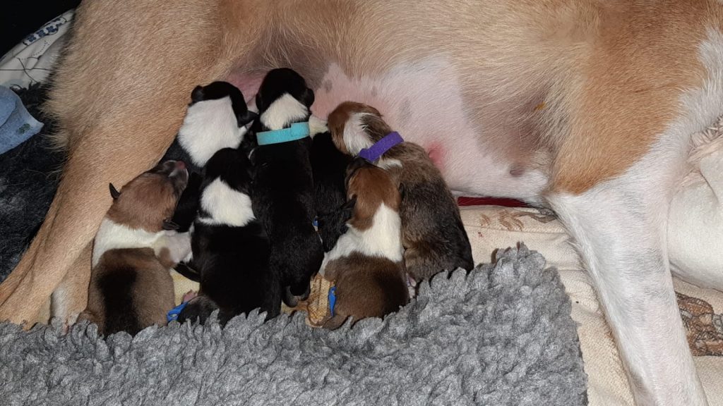 Beide Mama´s säugen die Welpen und teilen sich sozusagen die Arbeit. Es geht bei den Welpentagebüchern von den Yard und den Zodiac of Sky gemeinsam mit vielen Bildern und Videos weiter.