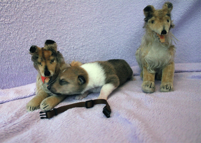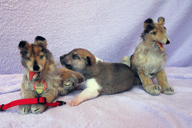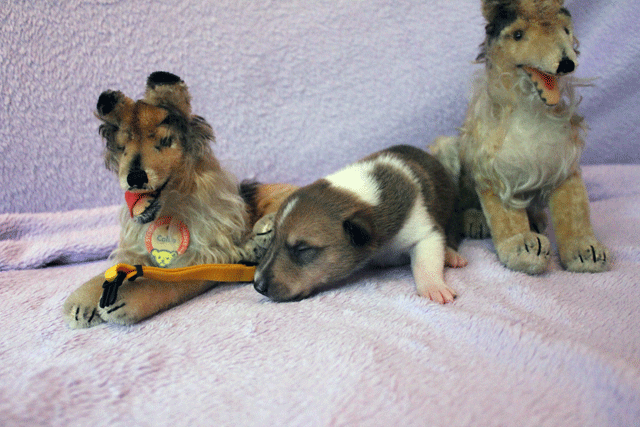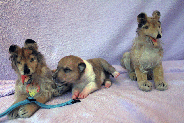 Welpe 3 Rüde sable geboren 05.02 Uhr, 324 gr. Halsband blau