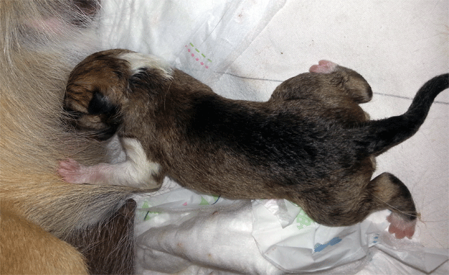 Welpe 1 Hündin sable geboren 04.17 Uhr, 278 gr.
