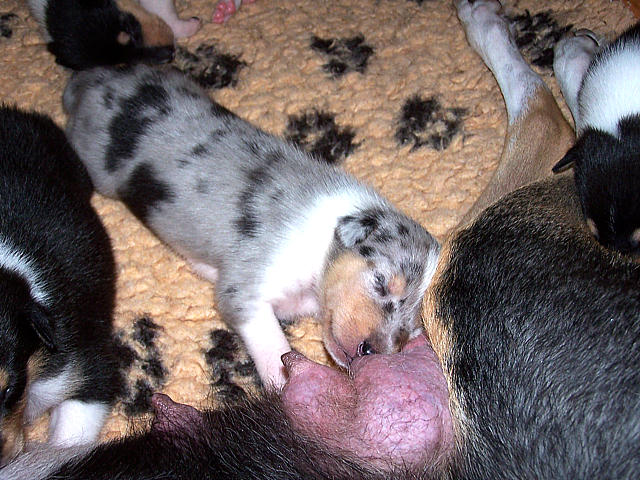 Mabel ist ein sehr fürsorgliche Mama und sie hat viel Milch um die 10 kleinen "Falcon´s zu ernähren. Alle Welpen haben auch schon fleißig an Gewicht zugenommen.
