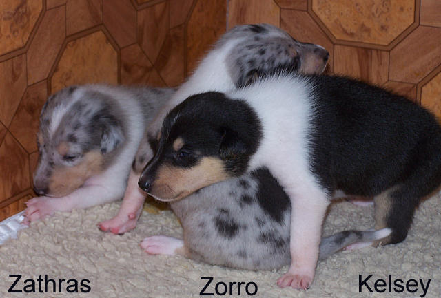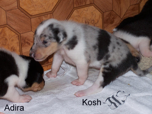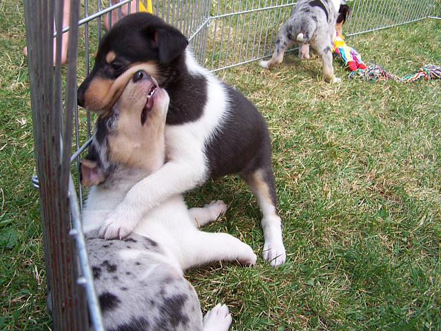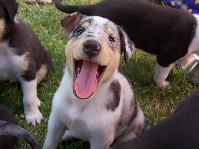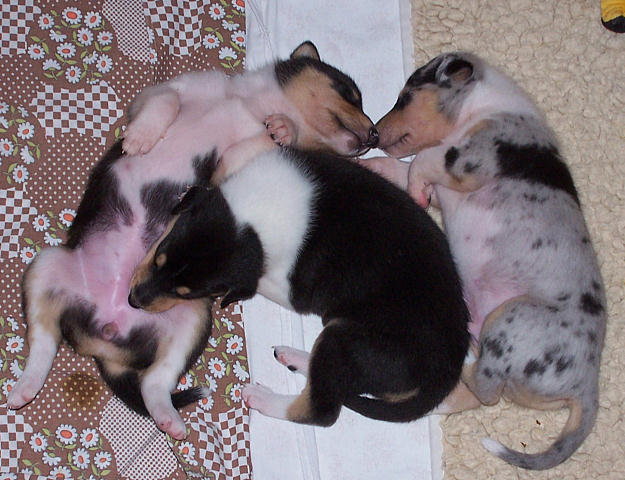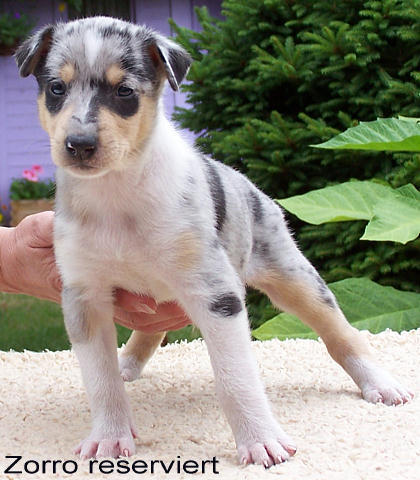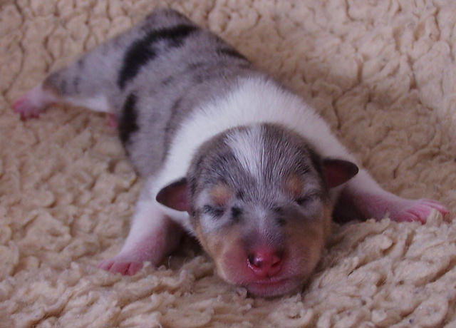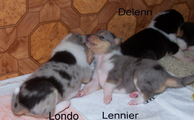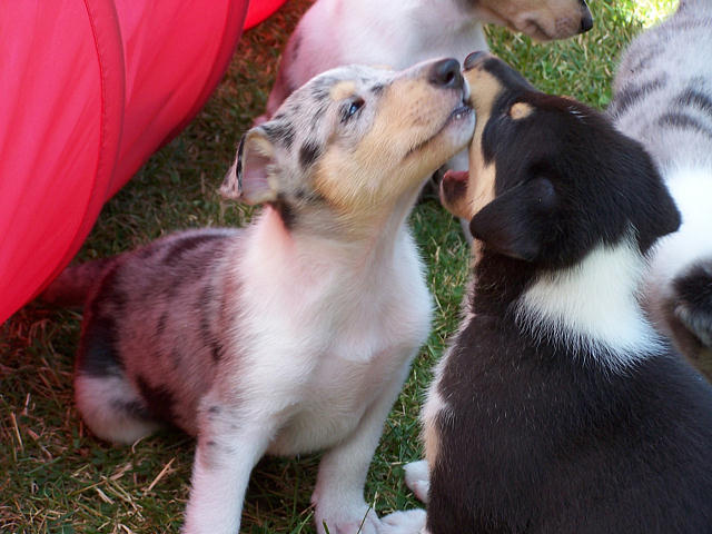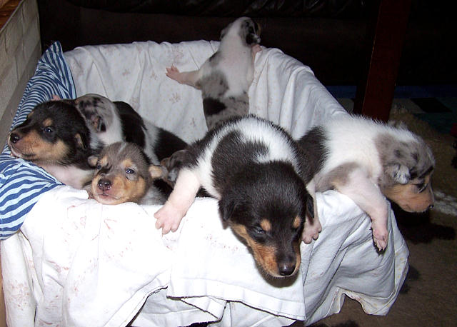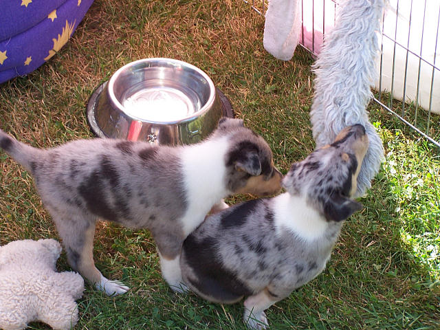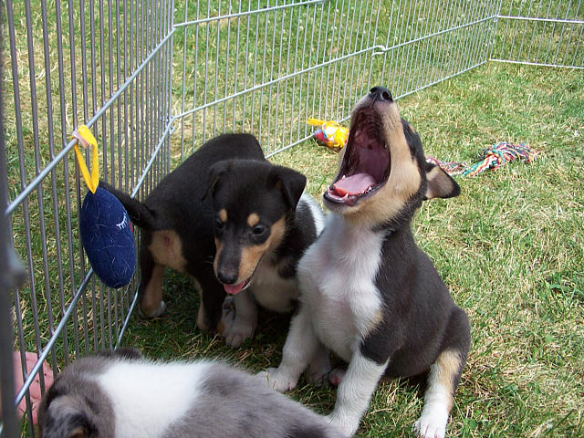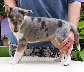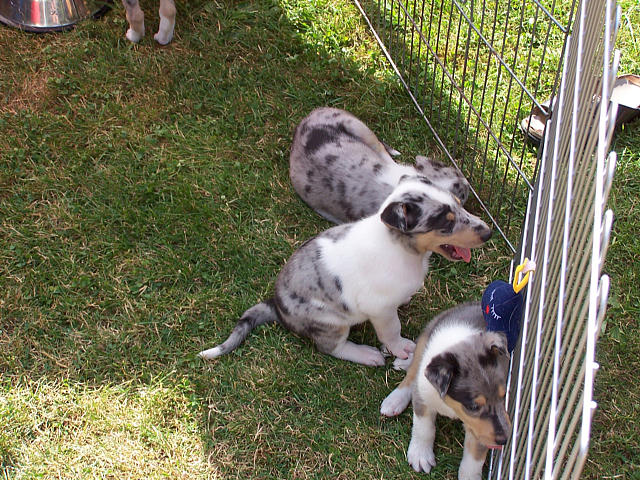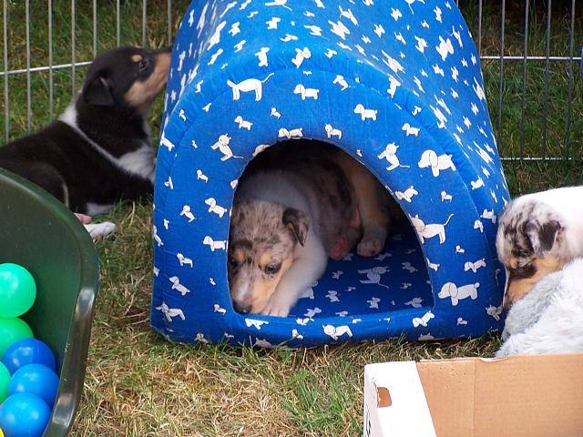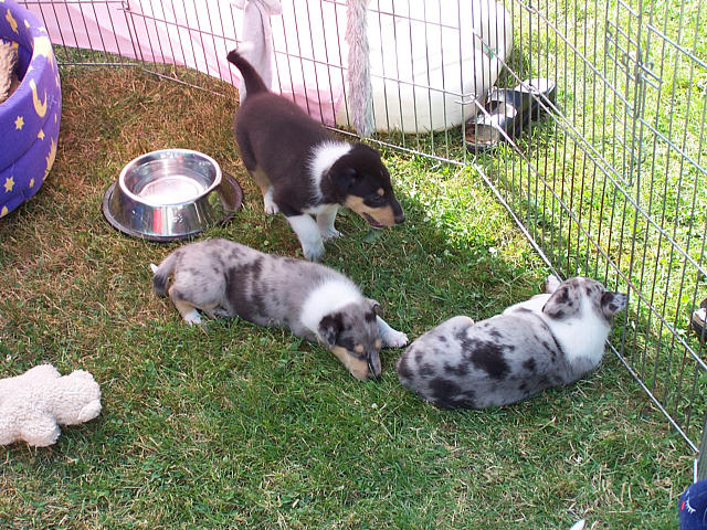 Es sind 5 blue-merle Rüden, 2 tricolour Rüden und 3 tricolour Hündinnen. |