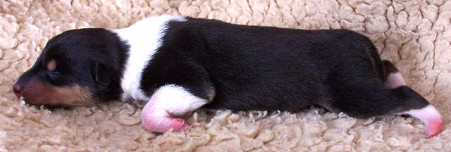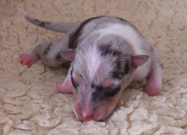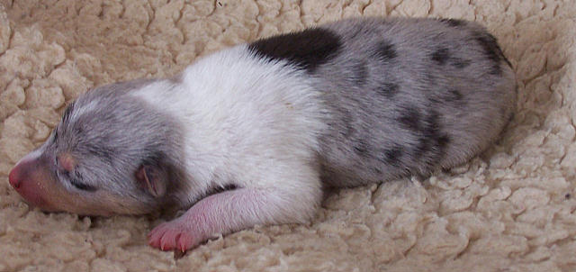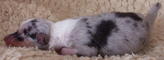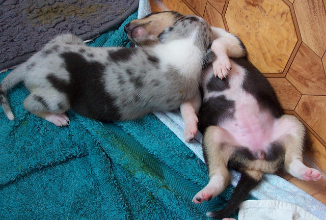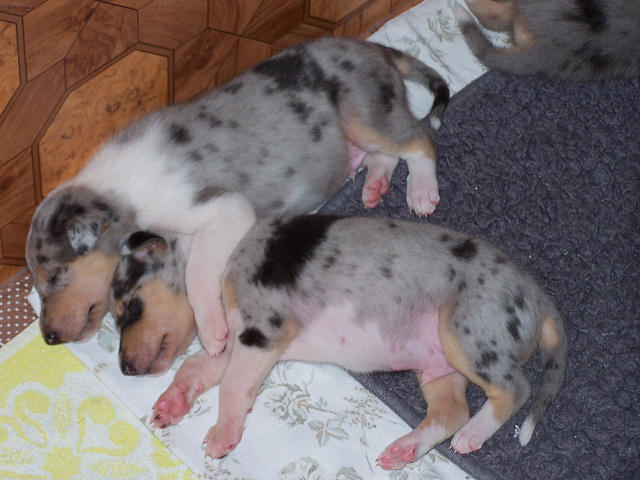 Die Kleinen haben ihr Gewicht verdoppelt. Ihre Lieblingsbeschäftigung ist an Mamas Milchbar trinken, viel schlafen und zwischendurch mal in der Wurfkiste krabbeln.