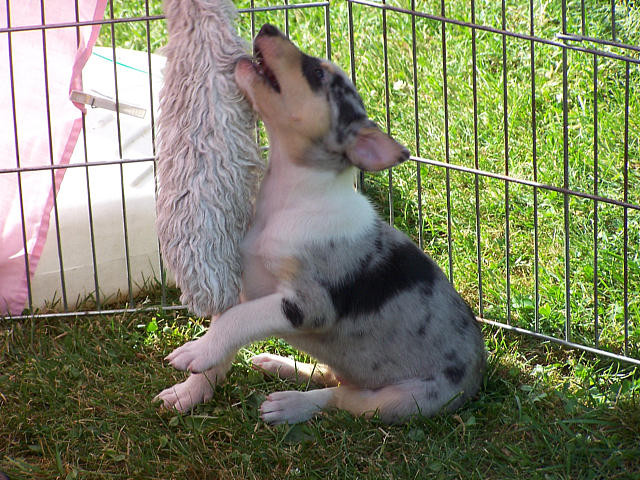 Die Gartensaison ist für die Welpen eröffnet. Es gibt viel "Neues" zu entdecken und die kleinen Falcon´s haben großen Spaß daran.